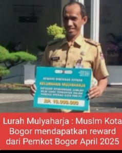 Atas Penghargaan dari Pemkot Bogor Management Administrasi Kelurahan Mulyaharja kecamatan Bogor Timur, telah mendapatkan penghargaan berupa uang tunai Sebesar Rp. 10 juta yang diterima secara simbolis lurah Mulyaharja Muslim Yuliantono saat Event ” Pekan Panutan Pembayaran PBB- P2 , Senin (28/April/2025) di Bazar Balaikota Bogor.